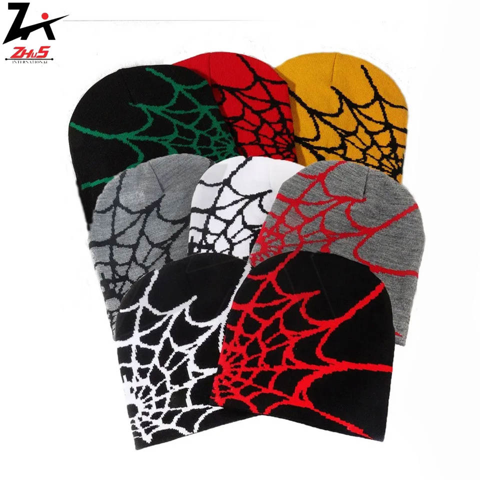หมวกสไปเดอร์เว็บถักทรงบีนนี่สำหรับผู้หญิงและผู้ชายหมวกแบบสวมหัวหมวกแบบสวมศีรษะให้ความอบอุ่นแนวสตรีทฮิปฮอปหมวกถักสำหรับฤดูหนาว