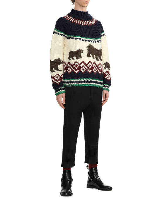 เสื้อสเวตเตอร์ถักแบบสวมหัวคอกลมแขนยาวสำหรับผู้ชายเสื้อถักลายการ์ตูนผ้าพิมพ์ลายการ์ตูนสำหรับฤดูใบไม้ร่วงและฤดูหนาว