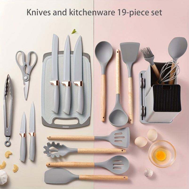 ชุดมีด Kitchenware19-piece เครื่องใช้ในครัวชุดมีดทำครัวทำจากซิลิโคนแบบไม่มี BPA มีดเชฟ