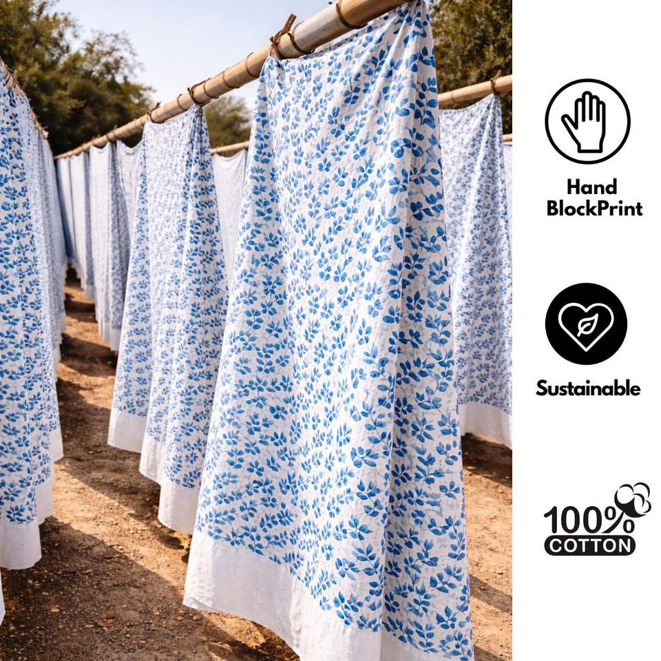 ผ้าฝ้ายแคมบริกพิมพ์ลายด้วยมือแบบ Knnotted Earth | ลายพิมพ์แบบดั้งเดิมของอินเดีย | บ้านสิ่งทอที่เป็นมิตรกับสิ่งแวดล้อมและยั่งยืน