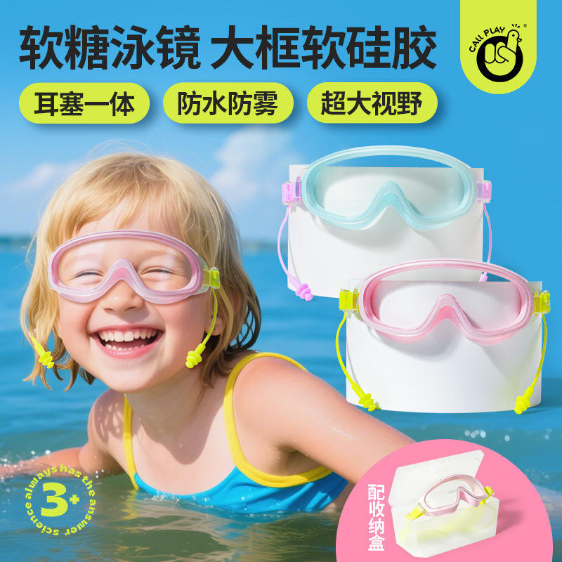 โคดาด้า ดั๊กแว่นตาว่ายน้ำซิลิโคนอ่อนนุ่มสำหรับเด็กขนาดใหญ่กันน้ำป้องกันหมอกความละเอียดสูงปรับได้สำหรับเด็ก 4-6
