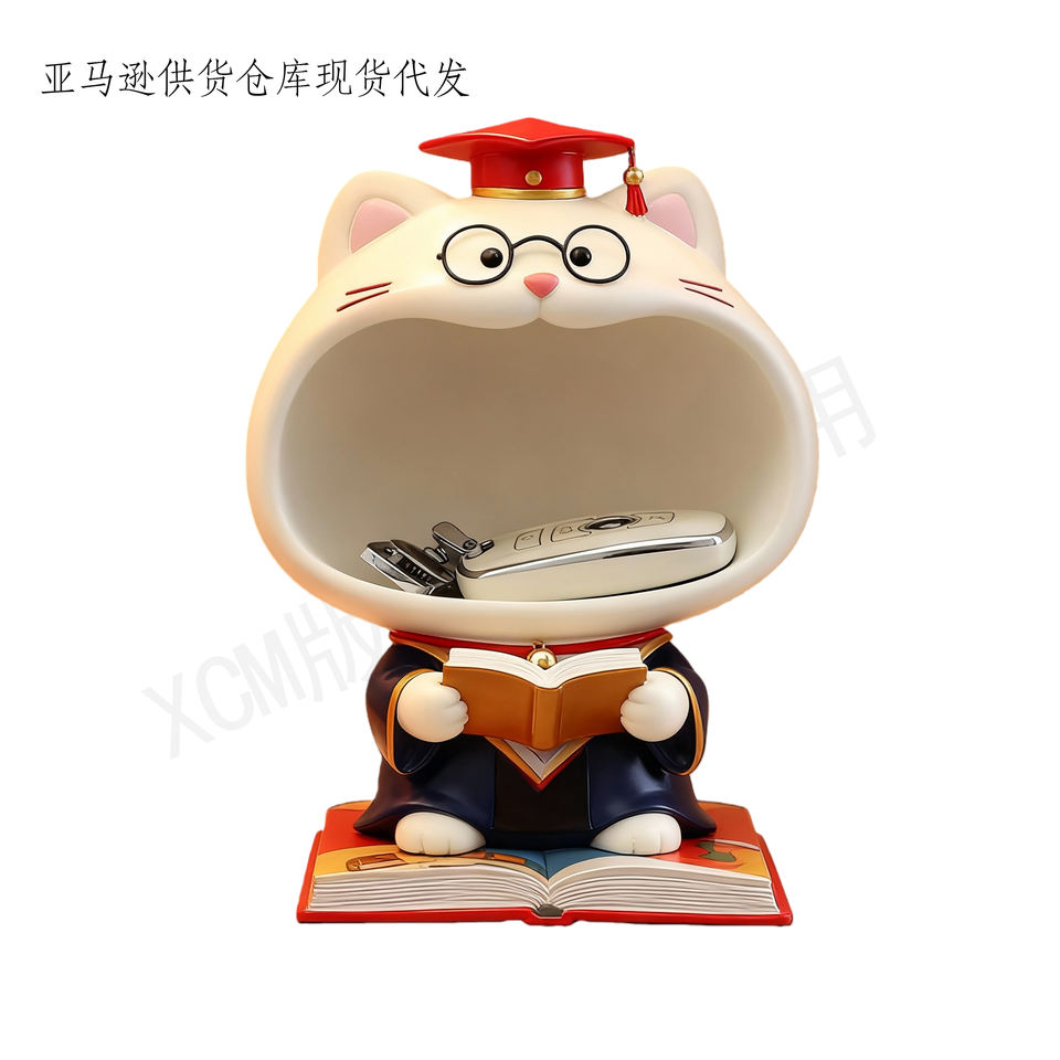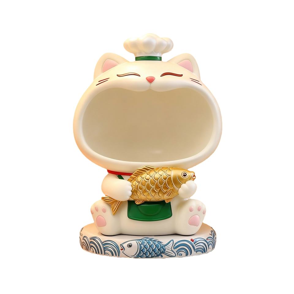 งานฝีมือเรซิ่นรูปแมวเชฟโคอิ - ที่เก็บของบริเวณทางเข้าพร้อมฐานรูปปลา, ของตกแต่งห้องครัว, เหมาะสำหรับเก็บกุญแจและของตกแต่งบ้านสไตล์โมเดิร์น