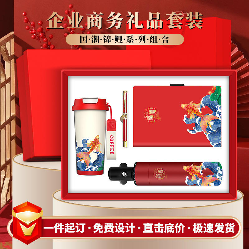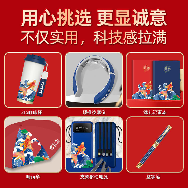 ชุดของขวัญธุรกิจโคอิ แก้วเก็บความร้อน พาวเวอร์แบงค์ ของขวัญปีใหม่จีนแบบกำหนดเอง ของขวัญส่งเสริมการขายทันสมัย