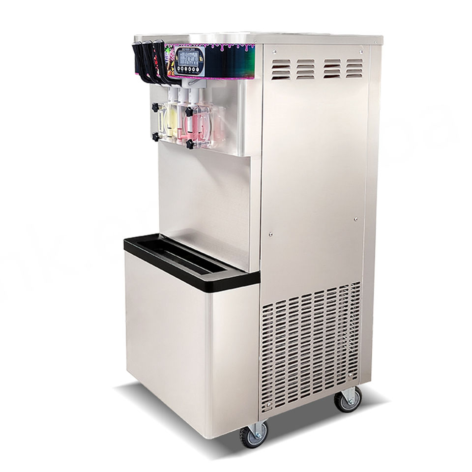 เครื่องทำไอศกรีมซอฟต์เสิร์ฟไฟฟ้า 3 รสชาติ สำหรับใช้ในเชิงพาณิชย์ พร้อมคอมเพรสเซอร์อัตโนมัติ ทำจากสแตนเลส ผลิตได้ 35-40 ลิตร/ชม. ได้รับการรับรองมาตรฐาน CE