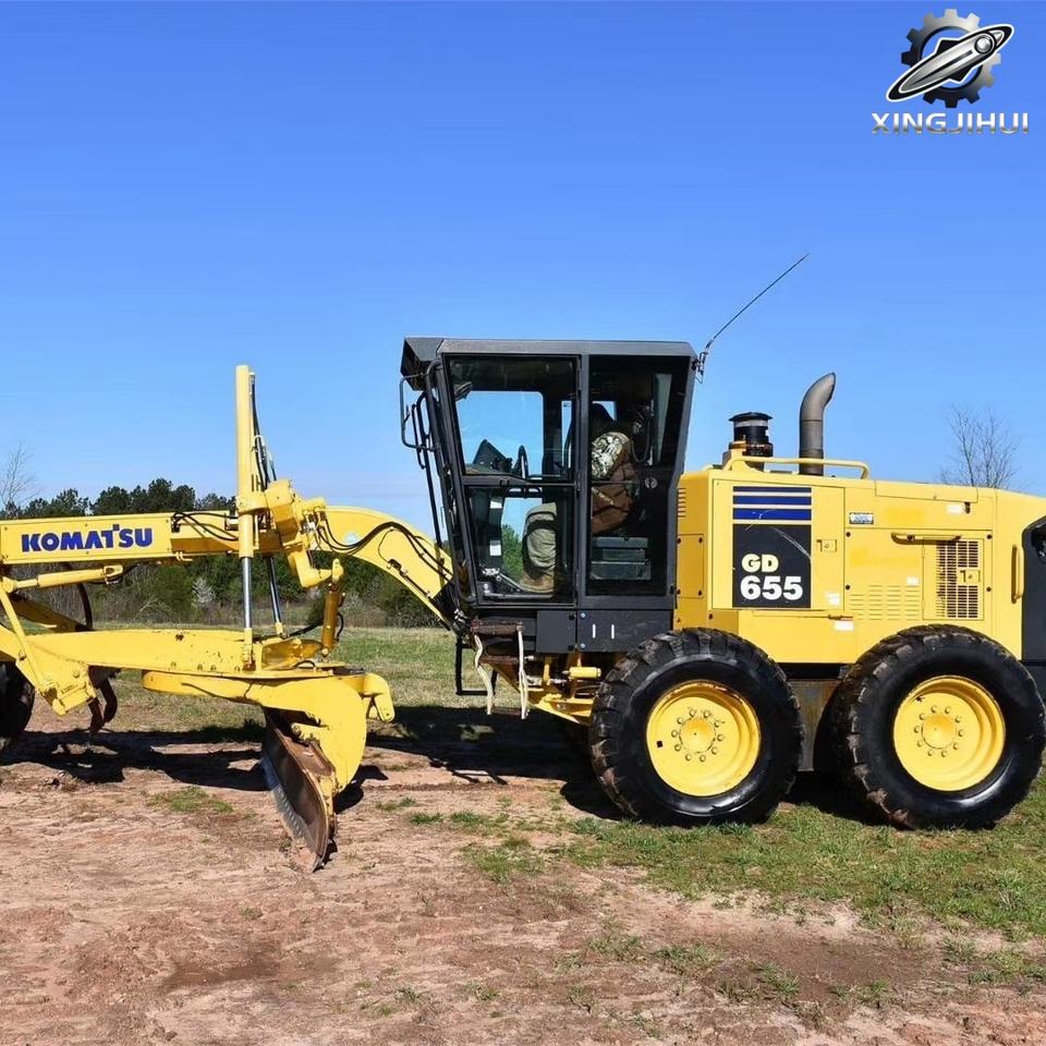 รถเกรดเดอร์มือสอง โคมัตสึ GD655 เกรดเดอร์ขนาดกลาง ผลิตในสหรัฐอเมริกา นำเข้าเครื่องจักรครบชุด เกรดเดอร์สำหรับงานหนัก 17 ตัน