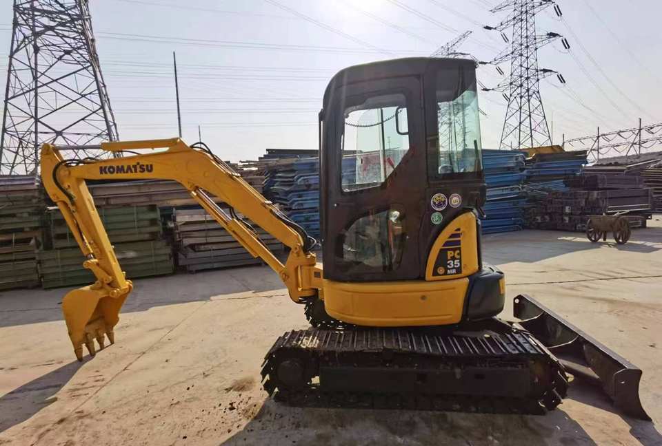 รถขุดโคมัตสึ PC35MR มือสอง ขนาด 3.5 ตัน พร้อมใบมีดดันดิน เครื่องยนต์และมอเตอร์ ราคาถูก รถขุดขนาดเล็กสำหรับขาย