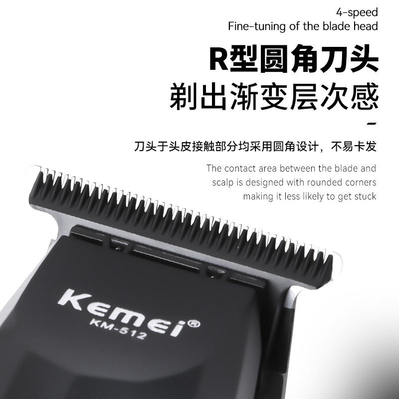 เครื่องตัดผมไฟฟ้าโคเมอิ รุ่น KM 512 ตัวเครื่องโลหะ มอเตอร์แบบแปรงถ่าน 7000-9000 รอบต่อนาที ชาร์จผ่าน USB ความเร็วสูง สำหรับใช้ในร้านเสริมสวย