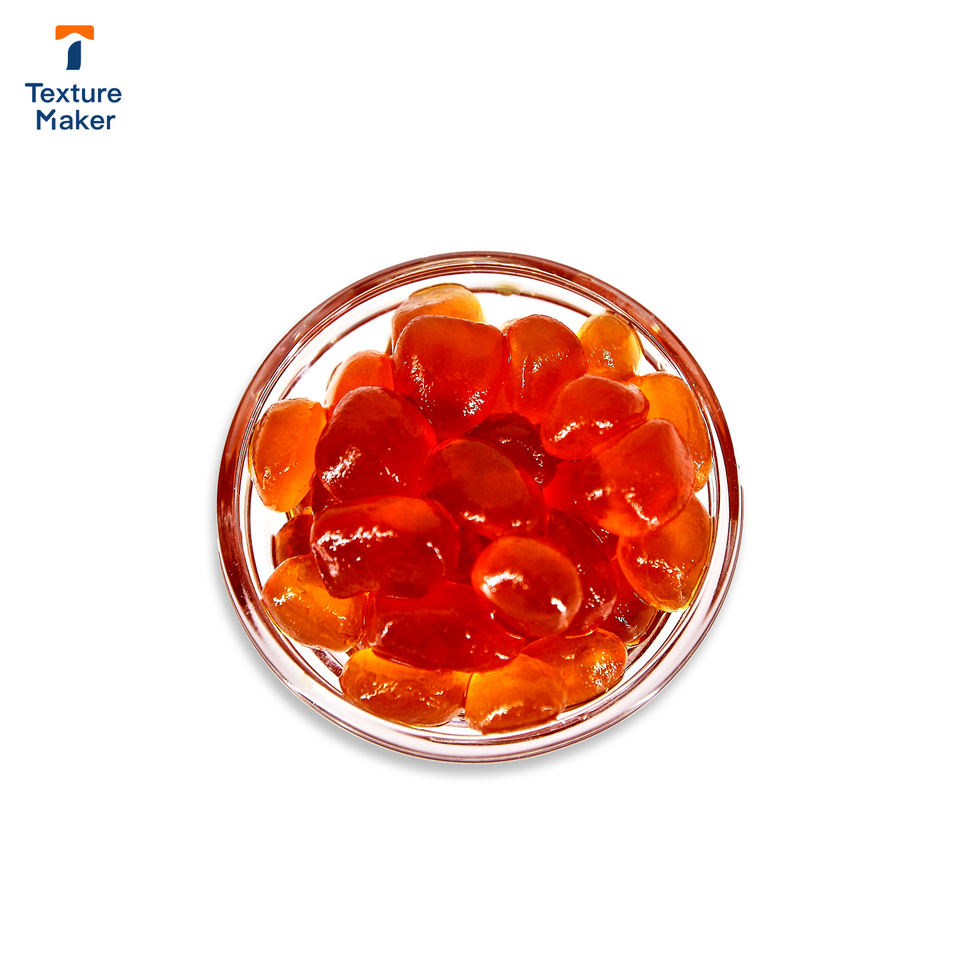 ลักษณะที่ปรากฏ:ลูกบอลสีน้ำตาลกับของเหลวโปร่งใสสีน้ำตาล