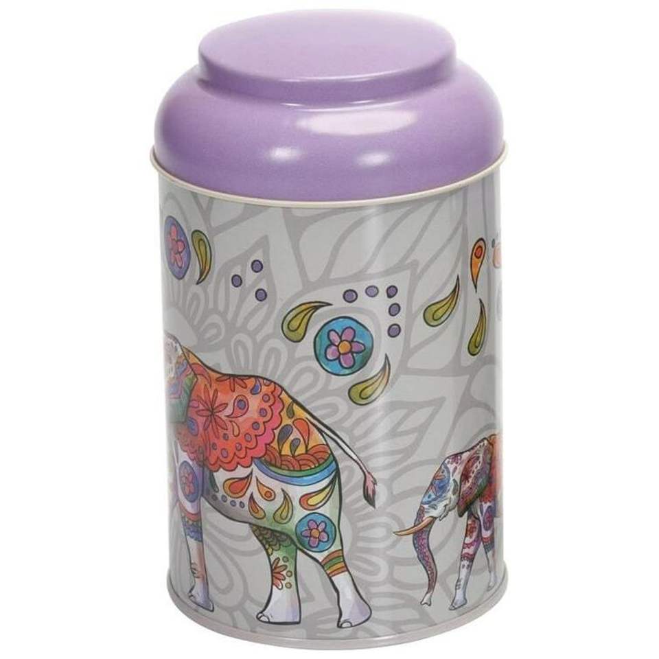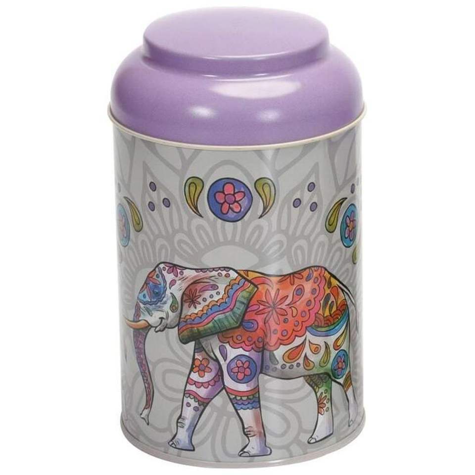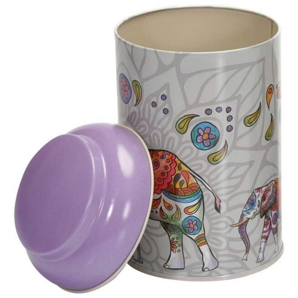 กล่องโลหะทรงกลมลายช้างโบฮีเมียนแมนดาลา รุ่น Kontensan EF115C3 ขนาด 1.2 ลิตร 105 มม. x 150 มม. พร้อมฝาโดม กล่องเก็บของตกแต่ง