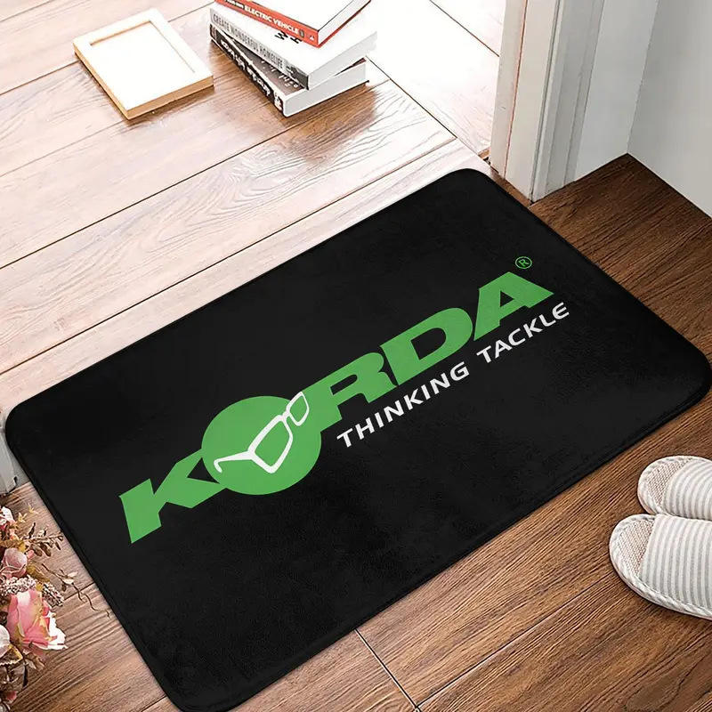 พรมเช็ดเท้าโคร์ดาสีดำเขียว โลโก้รูปสี่เหลี่ยมผืนผ้า ทำจากเส้นใยโพลีเอสเตอร์ ป้องกันคราบสกปรก ใช้สำหรับทางเข้าบ้าน