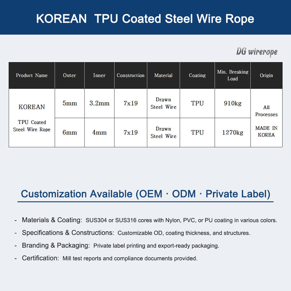 หมายเลขรุ่น:KOREAN TPU Coated Steel Wire Rope