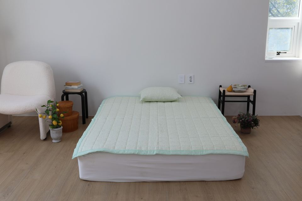 แผ่นรองนอนเย็นเกาหลี รุ่นโมดอล สำหรับฤดูร้อน เนื้อนุ่ม ระบายอากาศดี สีพาสเทล พร้อมผ้าคลุมท็อปเปอร์ ผ้าเย็นสัมผัส ขนาด 120x205 ซม.