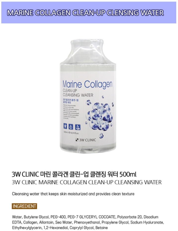 คลีนเซอร์หน้า 3W CLINIC มารีน คอลลาเจน เค-บิวตี้ ผลิตภัณฑ์บำรุงผิวจากเกาหลี 3W CLINIC มารีน คอลลาเจน คลีนอัพ แอนตี้ริงเคิล มิเนอรัล