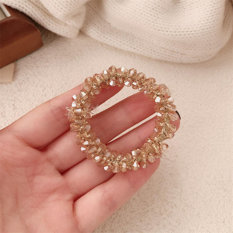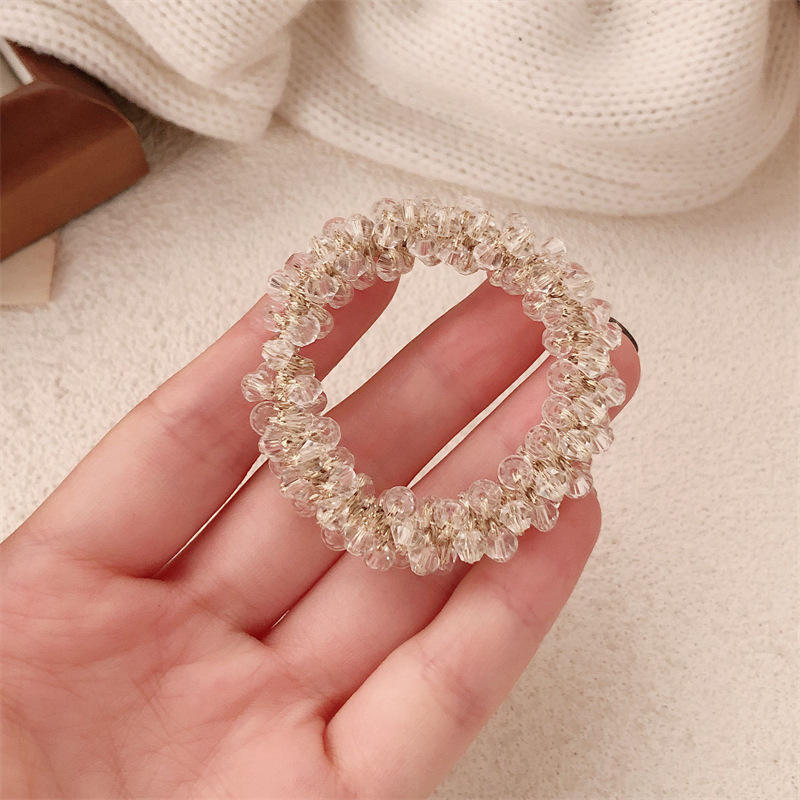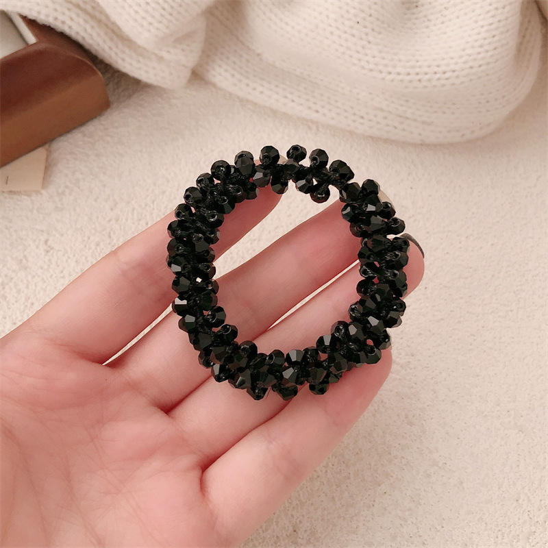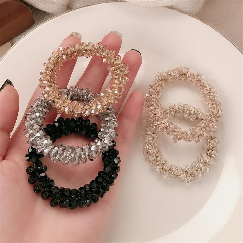 KAKA ที่คาดผมพลาสติก+ผ้าสไตล์เกาหลีสำหรับผู้หญิง เชือกผูกผมประดับลูกปัด หรูหรา ยืดหยุ่นได้ เครื่องประดับผมสำหรับงานปาร์ตี้
