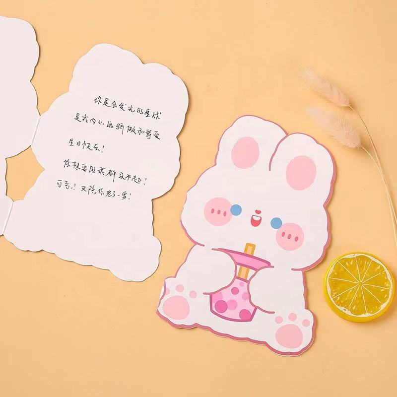 การ์ดอวยพรพับได้รูปหมีกระต่ายน่ารักสไตล์เกาหลีสำหรับเด็ก กล่องของขวัญวันเกิด ตกแต่ง
