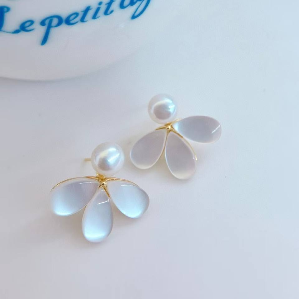 ต่างหูรูปดอกไม้ห้ากลีบน้ำจืดสไตล์เกาหลี น่ารัก สดใส เครื่องประดับเล็กๆ สไตล์สดใส ราคาพิเศษ ขายส่งบน Taobao