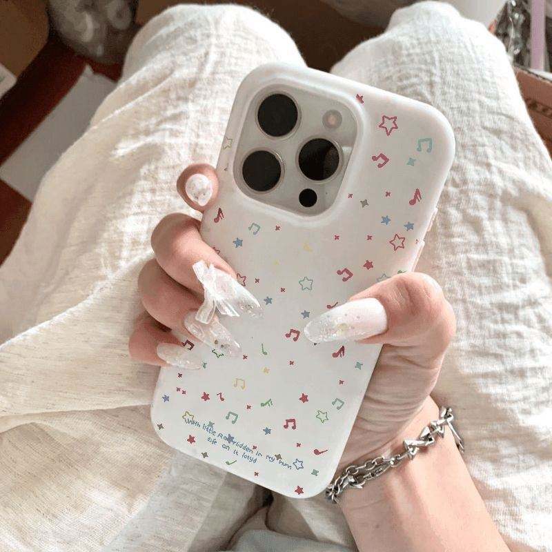 เคสโทรศัพท์ลายดาวดนตรีน่ารักสไตล์เกาหลีแบบเต็มจอ สำหรับ iPhone 16 Pro Max 11 12 13 14 15 Pro 8 7 Plus 16E แบบนิ่ม