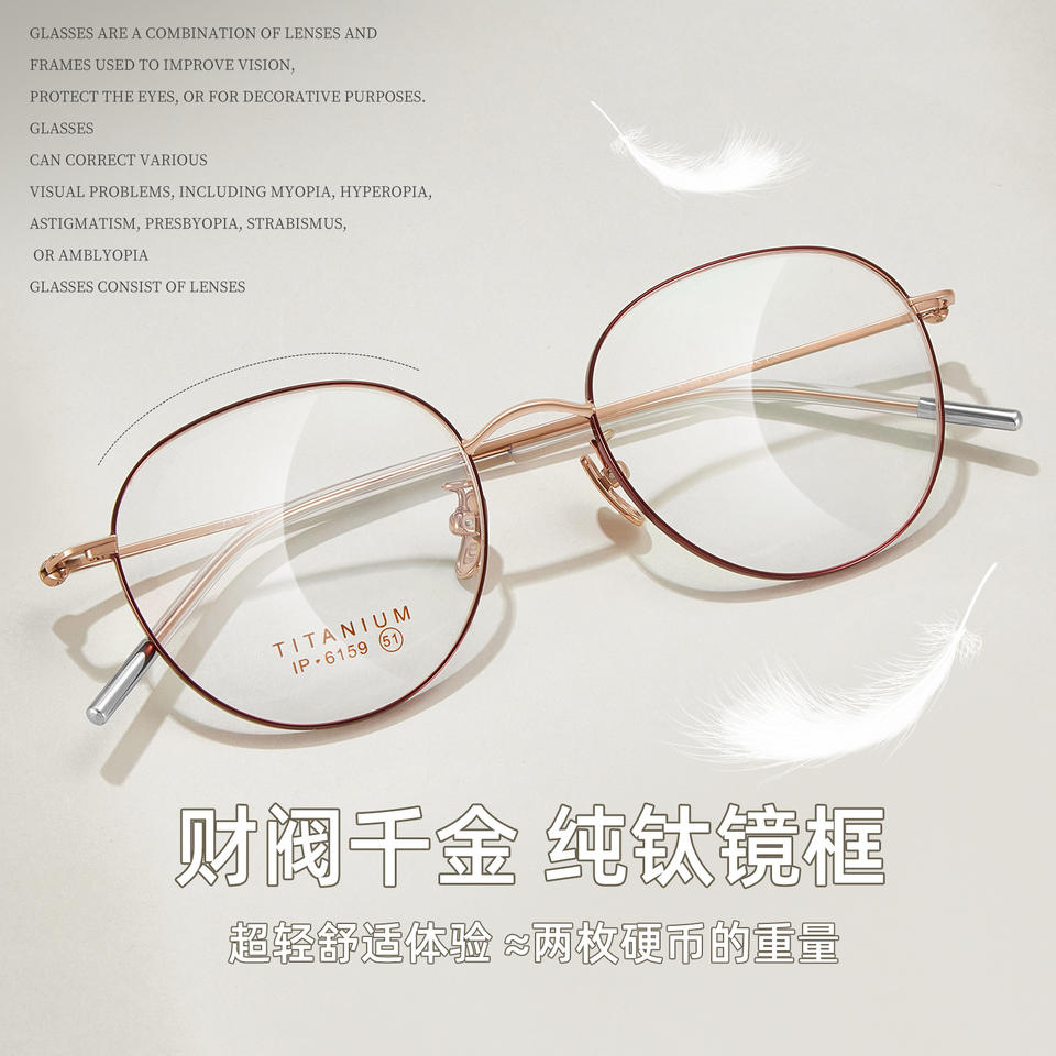 กรอบแว่นตาไทเทเนียมทรงกลมสไตล์นางเอกเกาหลี รุ่น 6159 น้ำหนักเบา แบบเต็มกรอบ สำหรับทุกเพศ ผลิตที่แด่ยาง