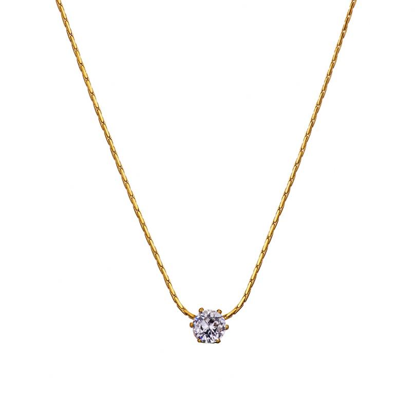 สร้อยคอแฟชั่นสแตนเลสสตีลเกาหลีดีไซน์หรูหรา พร้อมจี้ประดับเพชรแล็บทองคำแท้ 14K สำหรับผู้หญิงและเด็กผู้หญิง