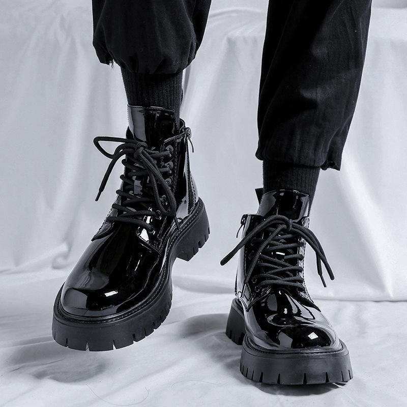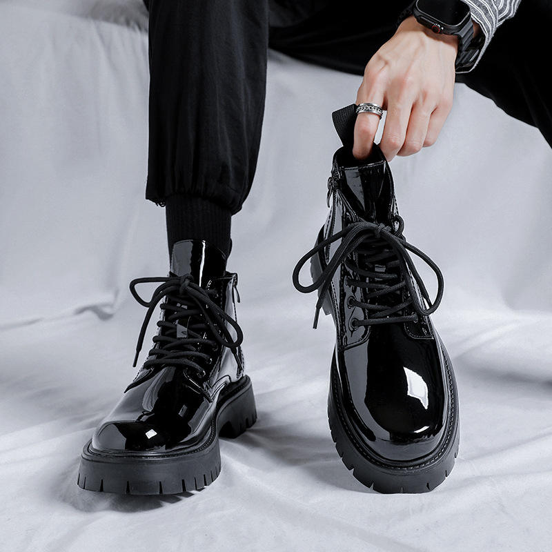 รองเท้าบูทแฟชั่นเกาหลีทรงหุ้มข้อสูง สีพื้น พื้นหนา สายรัดบาง สวมใส่เป็นรองเท้าหนังด้านนอก