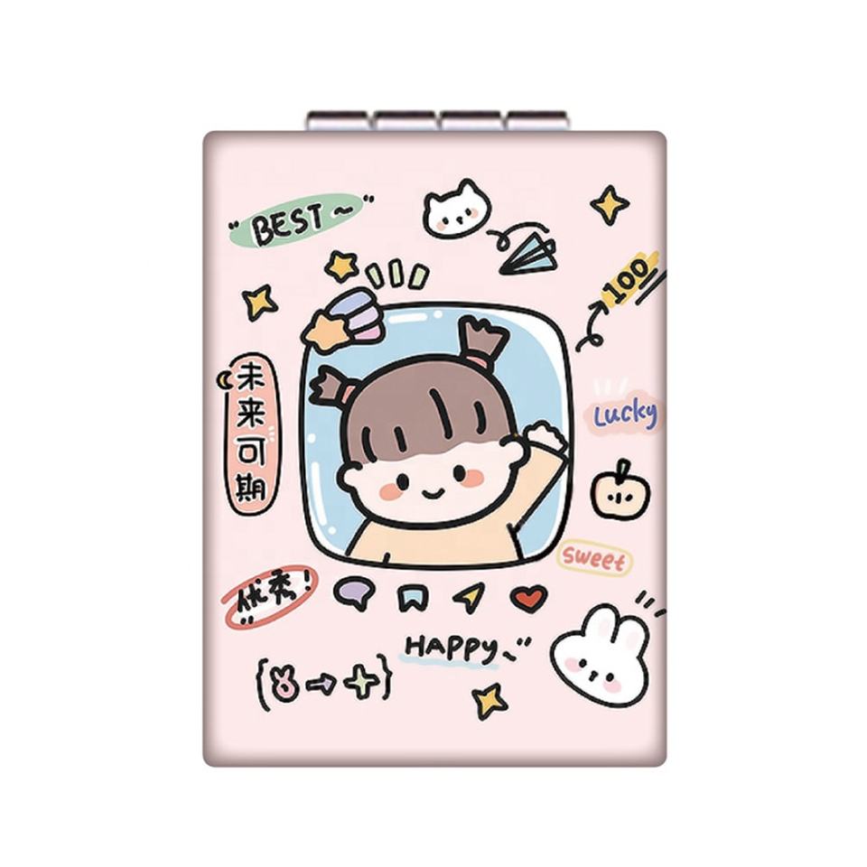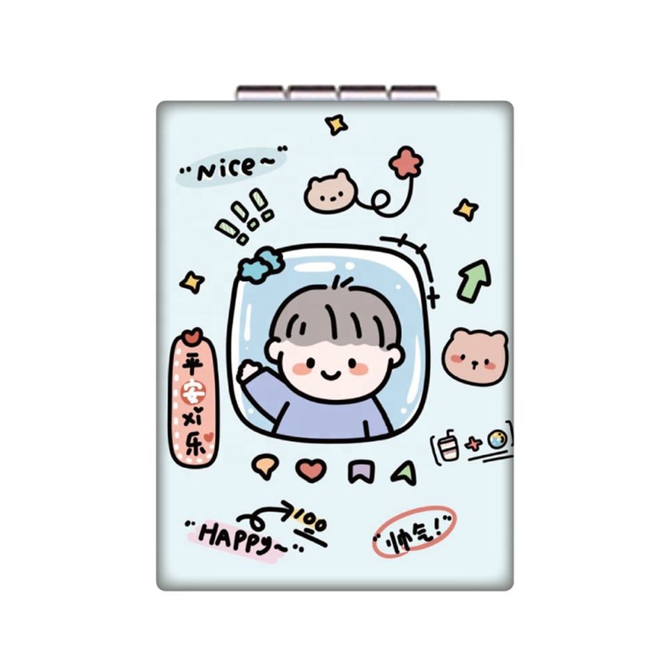 กระจกแต่งหน้าหนัง PU แบบถือได้, กระจกแต่งหน้าแบบแผ่นปะรูปหัวใจขนาดเล็กสำหรับเด็กผู้หญิงแบบเกาหลีสามารถปรับแต่งได้