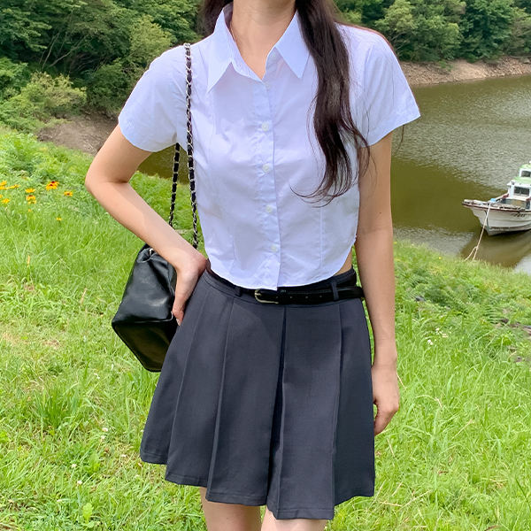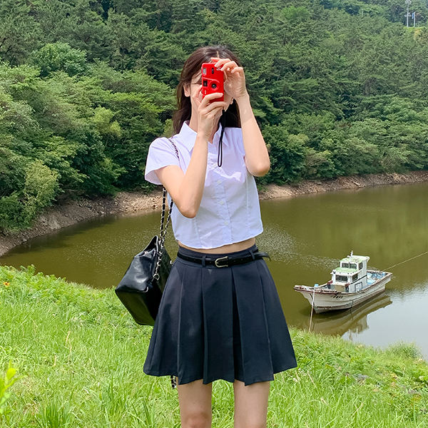 เสื้อครอปสลิมสไตล์เกาหลีเสื้อครอปเข้ารูปแบบโรแมนติก