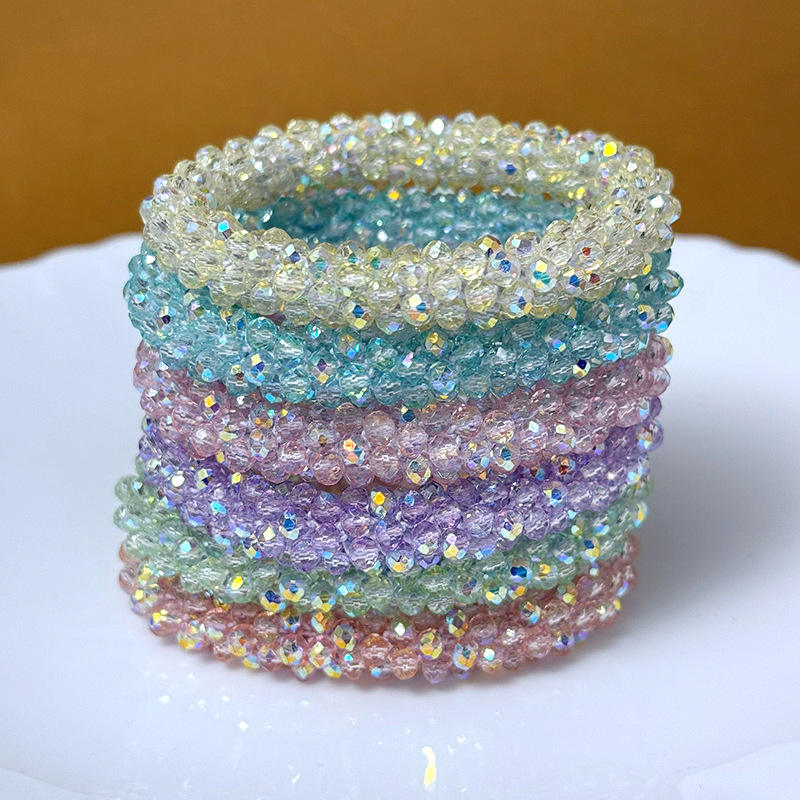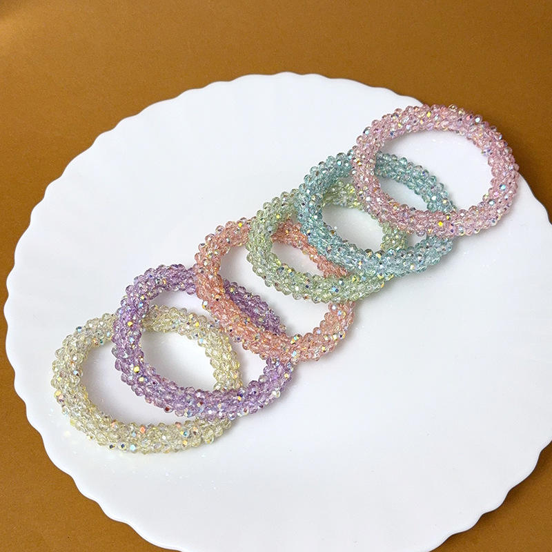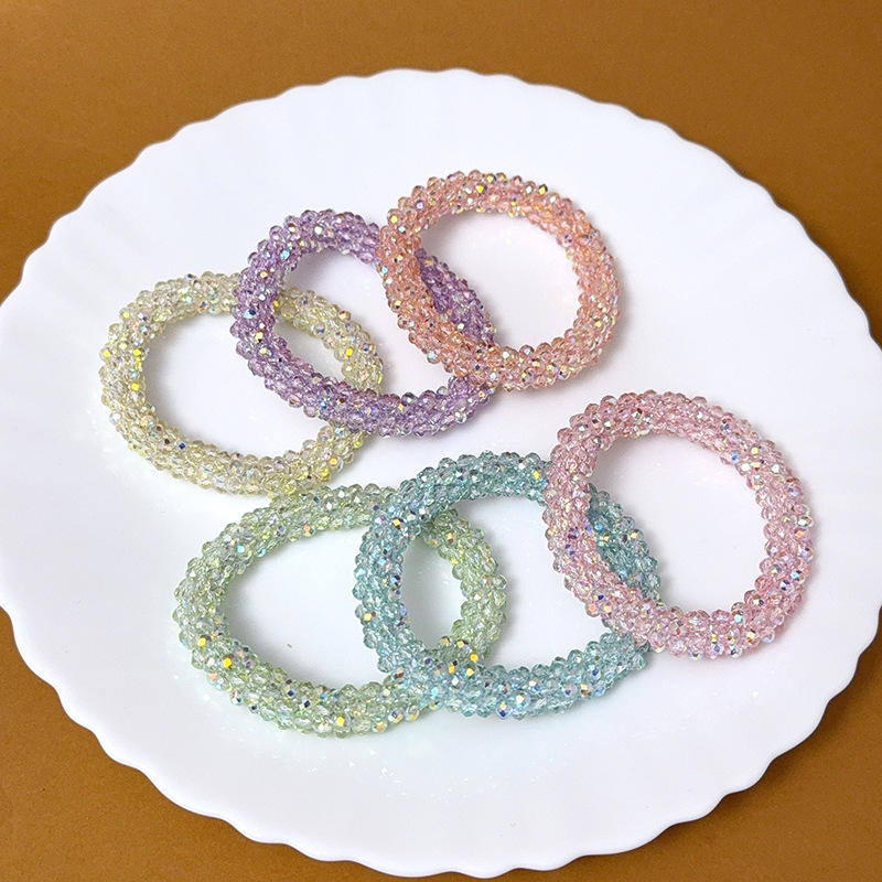 ยางรัดผมคริสตัลยอดนิยมจากเกาหลี หลากสีสัน ประดับลูกปัด สำหรับผู้หญิง