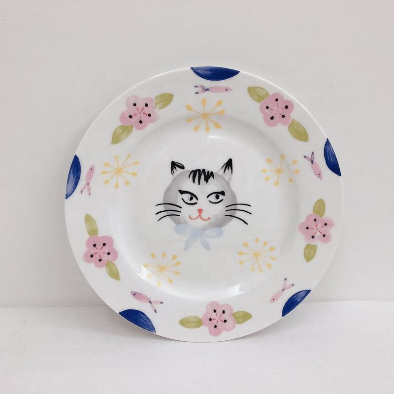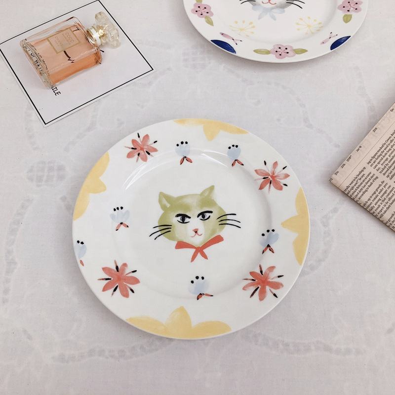 Korean Ins Cute Creative Watercolor Cartoon Cat Ceramic Dinner Plate Cake Fruit Western Plates Breakfast Plate