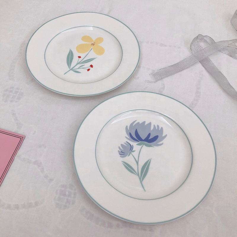 จานอาหารเย็นลายดอกเบญจมาศสไตล์เกาหลี ขนาดเล็ก สดใส ทำจากเซรามิก ใช้กับไมโครเวฟได้ เหมาะสำหรับอาหารตะวันตก ของหวาน และผลไม้