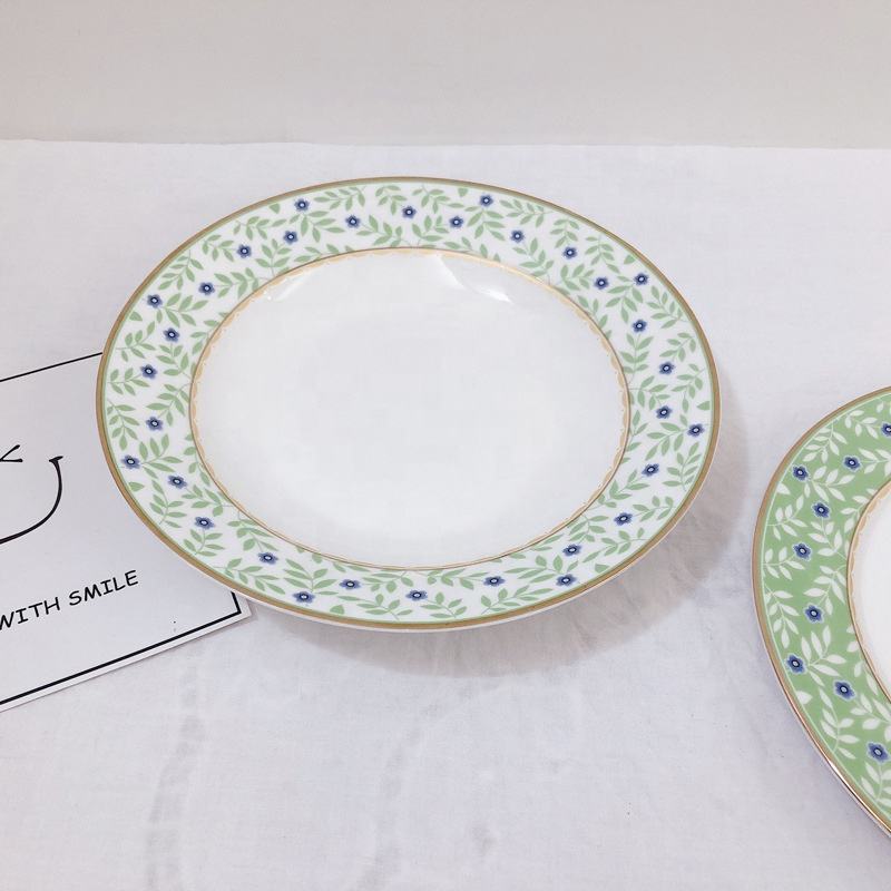ชื่อผลิตภัณฑ์:จานเซรามิกสีเขียวแอปเปิ้ลขอบทอง