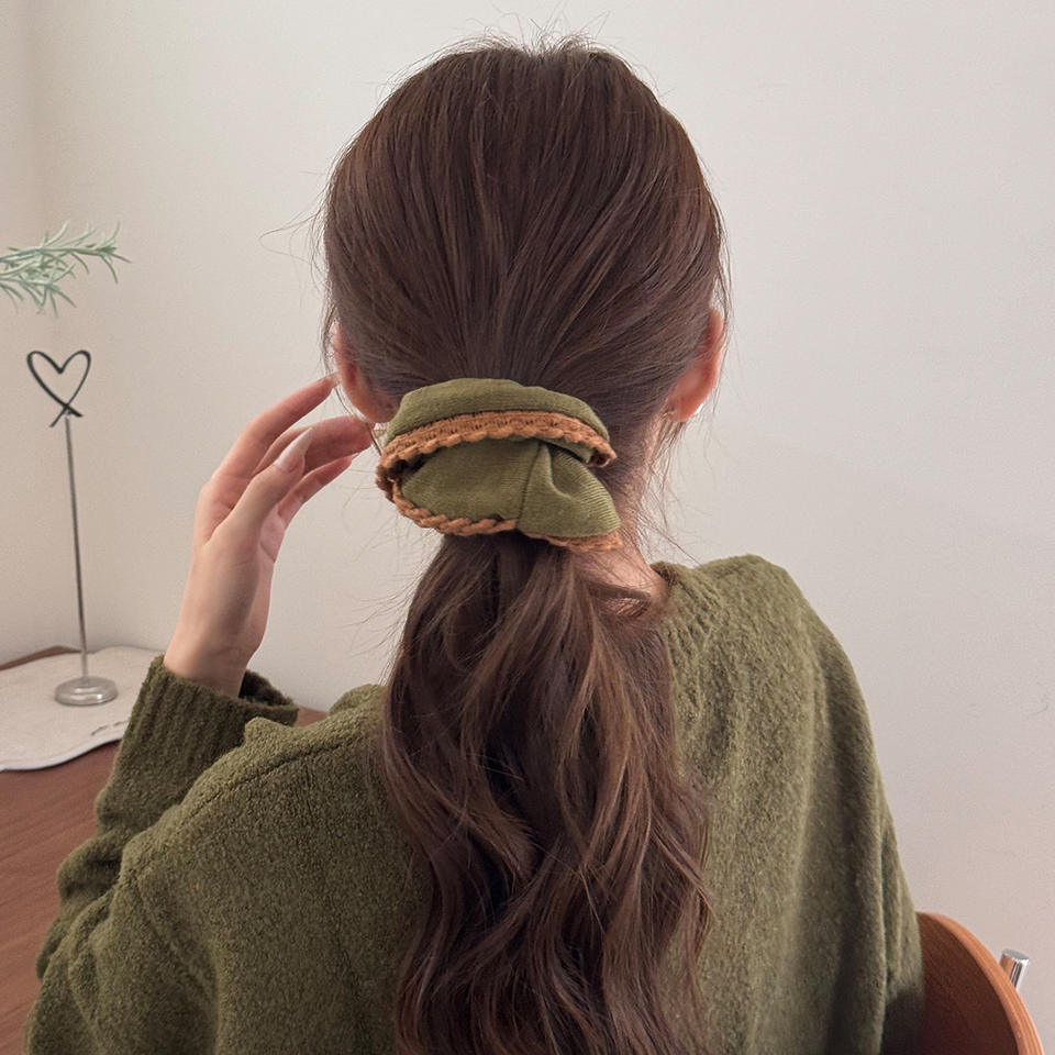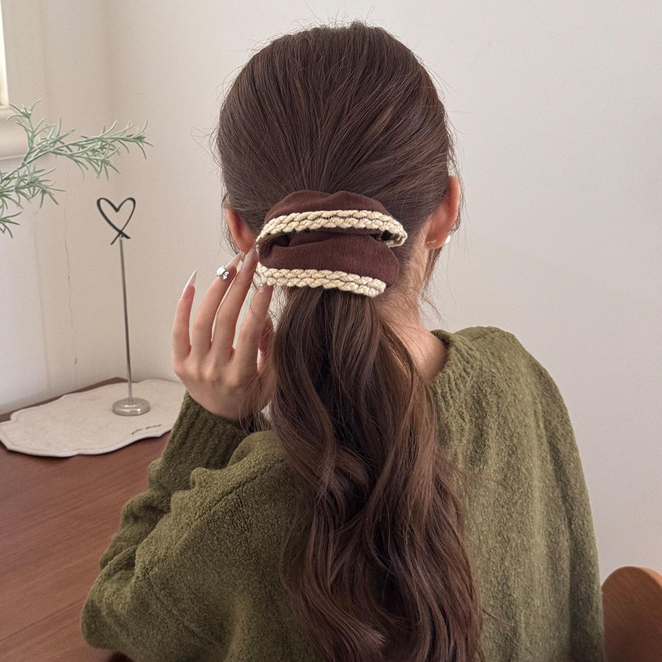 ที่คาดผมถักสไตล์เกาหลีแบบวินเทจสำหรับผู้หญิง เรียบง่าย เป็นมิตรกับสิ่งแวดล้อม ยางรัดผมสำหรับฤดูใบไม้ร่วงและฤดูหนาว