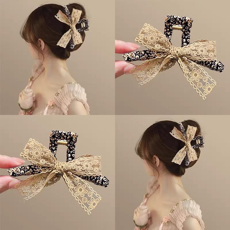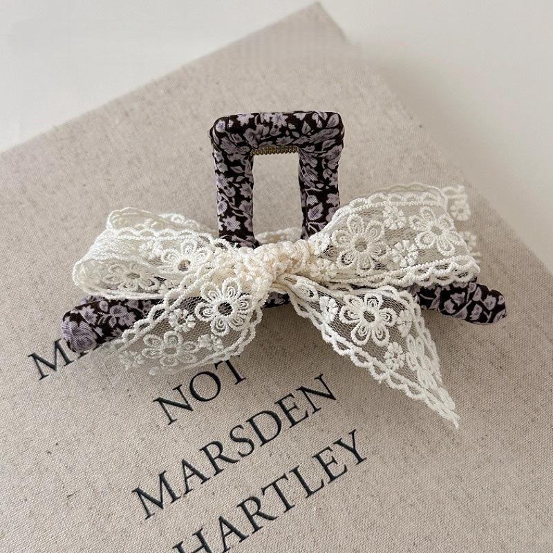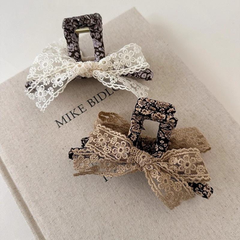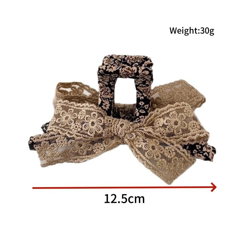 กิ๊บติดผมรูปโบว์ลูกไม้สไตล์เกาหลีสำหรับผู้หญิง ดีไซน์หรูหราหุ้มผ้า ตัวหนีบพลาสติกแบบก้ามปู
