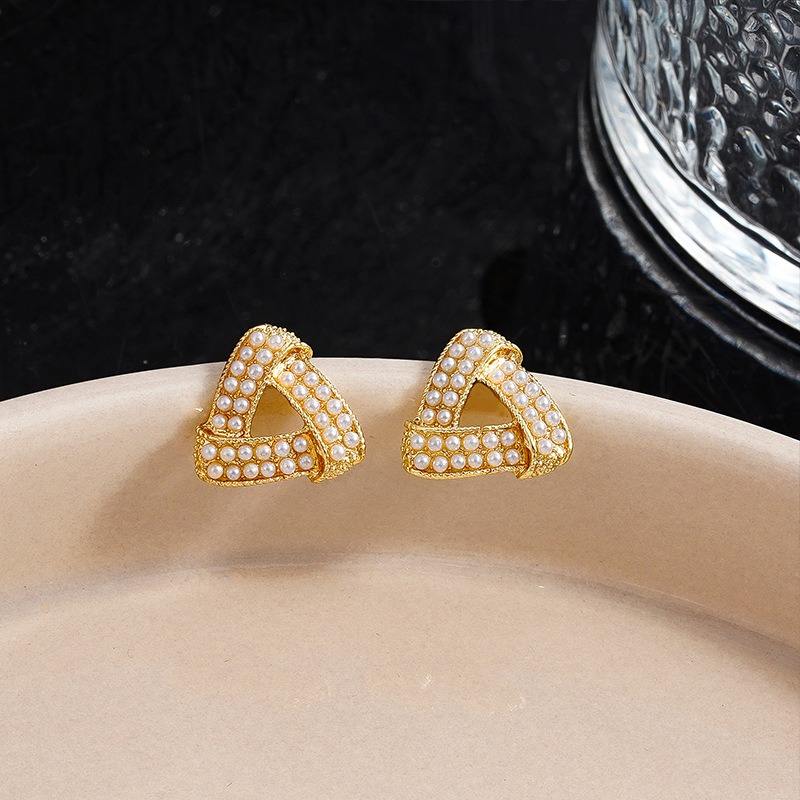 ต่างหูมุกเทียมทรงเรขาคณิตสีทองสำหรับผู้หญิงสไตล์เกาหลี เครื่องประดับอัลลอยด์ทันสมัย ขายส่งเป็นของขวัญ