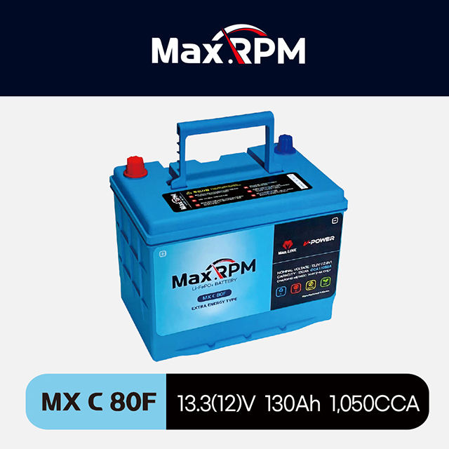 แบตเตอรี่รถยนต์เกาหลี Maxline 12V ความจุ 130Ah 1,050CCA ENERGY MX C 80F อายุการใช้งานยาวนาน ลิเธียมไอรอนฟอสเฟต (LiFePO4)
