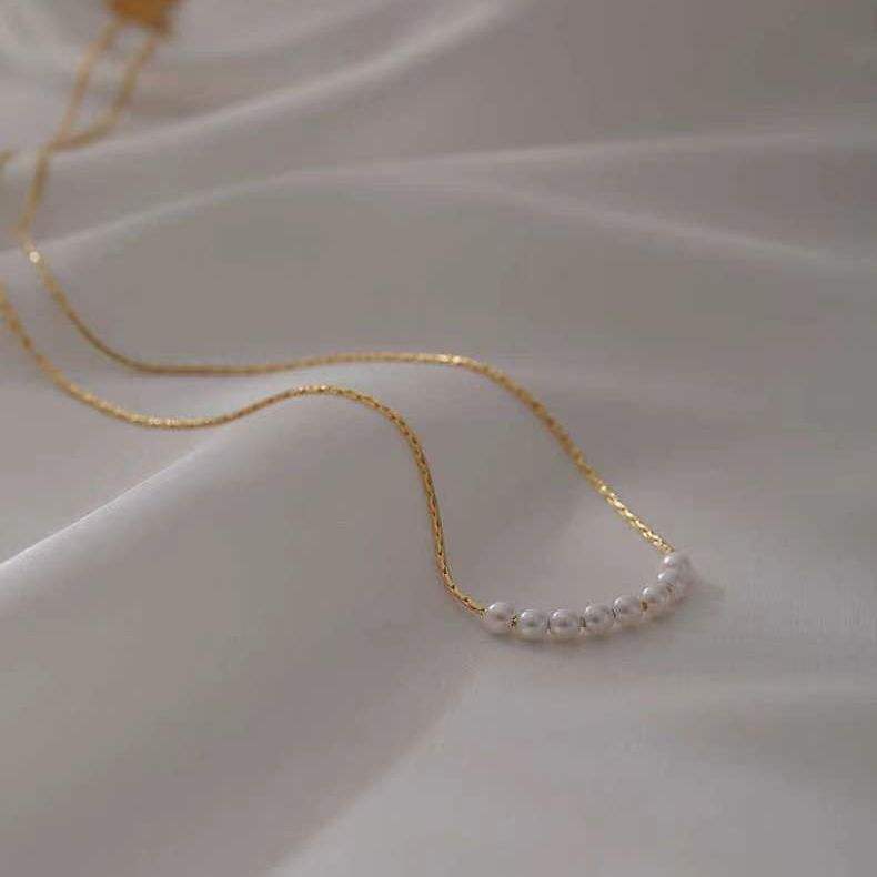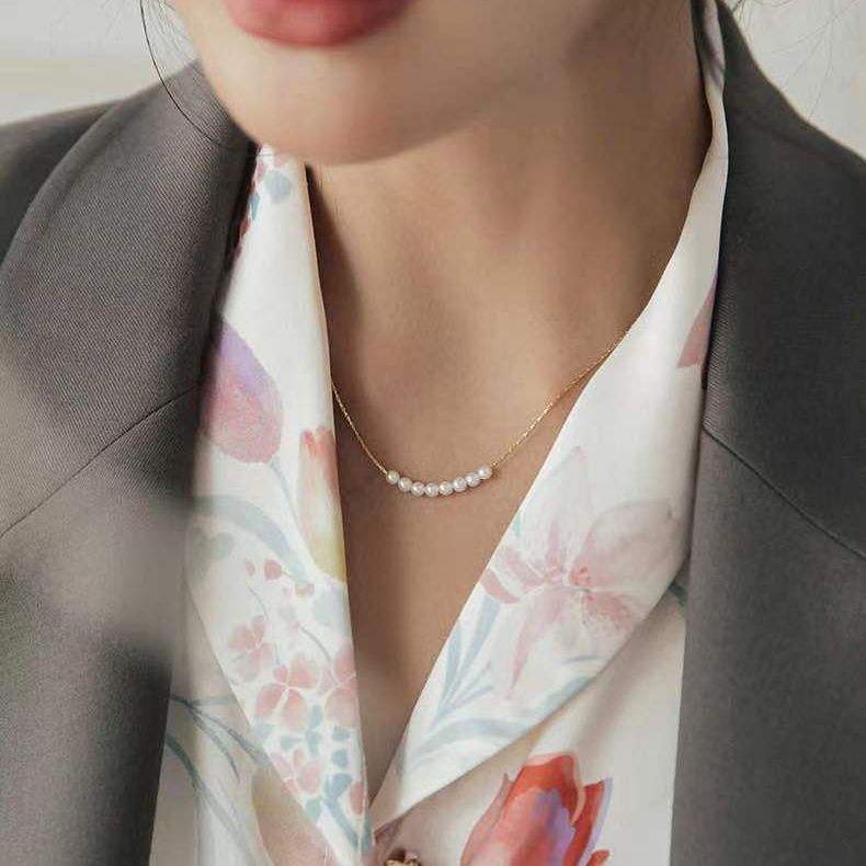 สร้อยคอมุกน้ำจืดสไตล์มินิมอลเกาหลี ดีไซน์หรูหรา น้ำหนักเบา สายคล้องคอ ดีไซน์ระดับไฮเอนด์ ใช้งานได้หลากหลาย