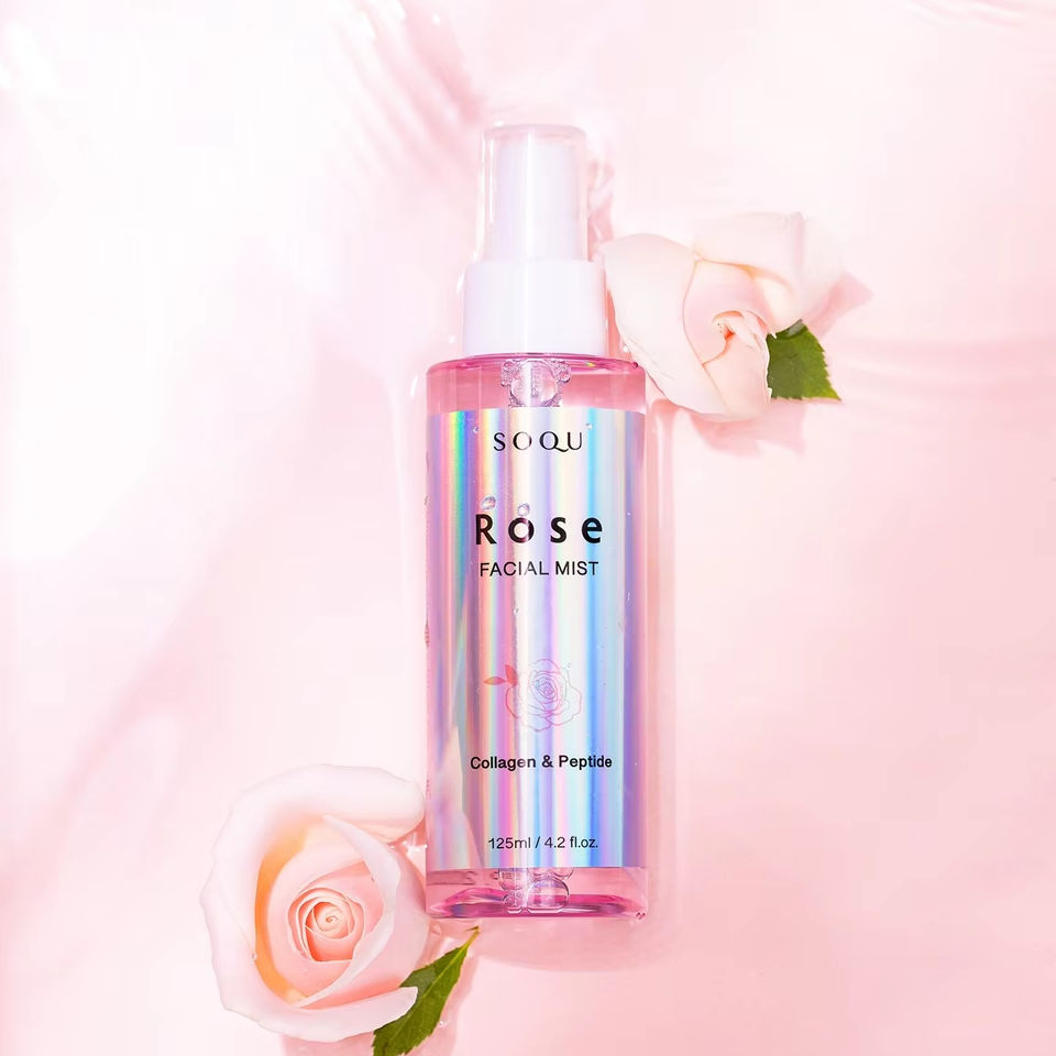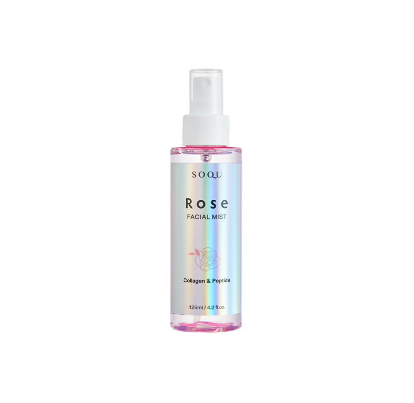สเปรย์น้ำแร่บำรุงผิวหน้ากลิ่นกุหลาบ ยี่ห้อ SOQU แบรนด์เครื่องสำอางอันดับ 1 ของเกาหลี ผลิตจากสารสกัดกุหลาบ ผลิตในเกาหลี เครื่องสำอางเกาหลี K-beauty สเปรย์เพิ่มความชุ่มชื้นให้ผิว
