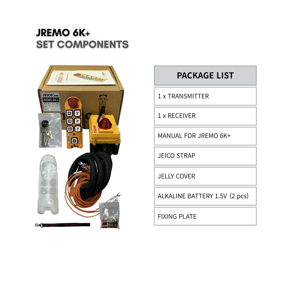 รีโมทคอนโทรลหลายช่องสัญญาณ JREMO 6K+ (7 ปุ่ม), รีโมทควบคุมอุตสาหกรรมสำหรับเครนยกของ, ความเร็วเดี่ยว/คู่