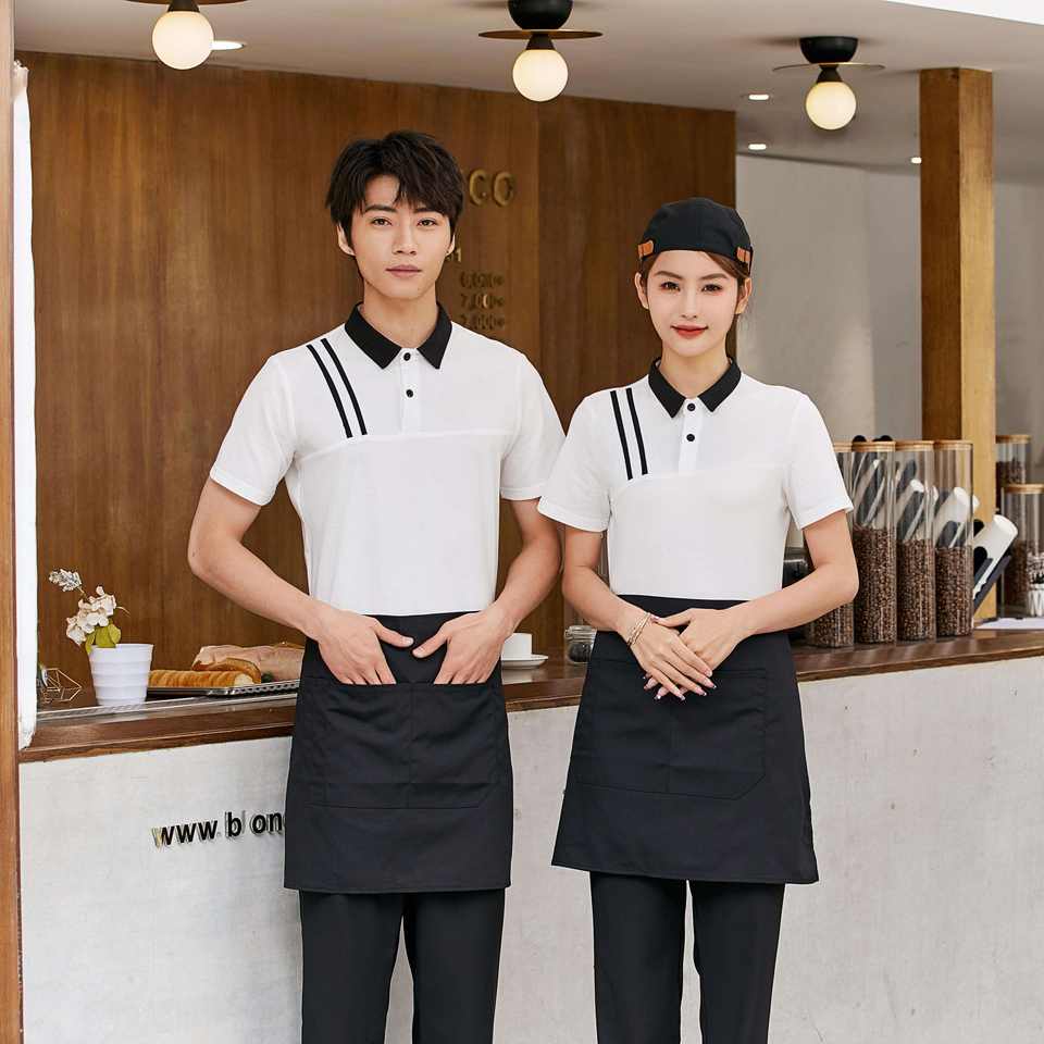 Korean Restaurant Staff Uniforms Customized Logo Cotton Polo Shirt for Men Waiters Waitresses Denim Style Straight Mid Summer