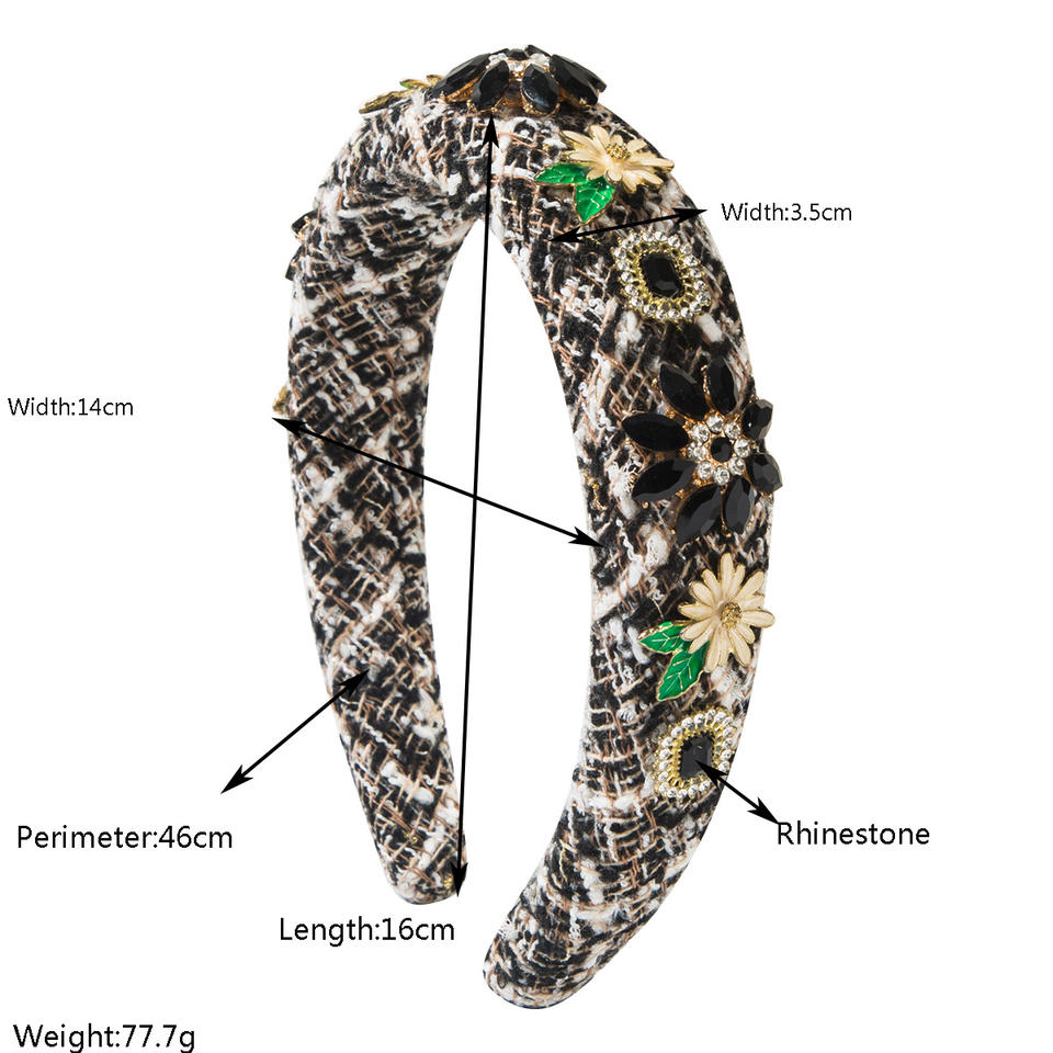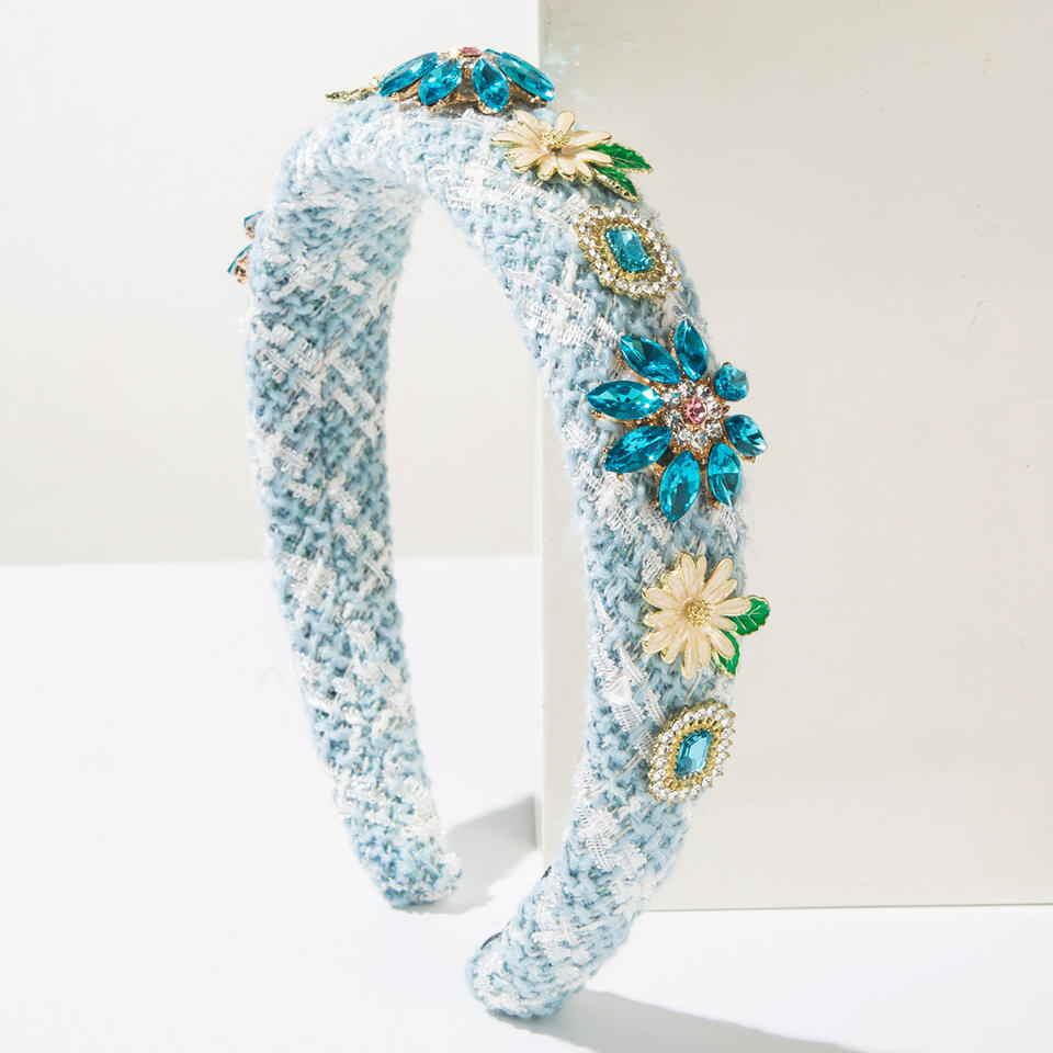 ที่คาดผมผ้าลายดอกไม้สไตล์เกาหลีแบบเรโทรประดับด้วยพลอยประกายระยิบระยับเครื่องประดับผมทอมือสำหรับผู้หญิง