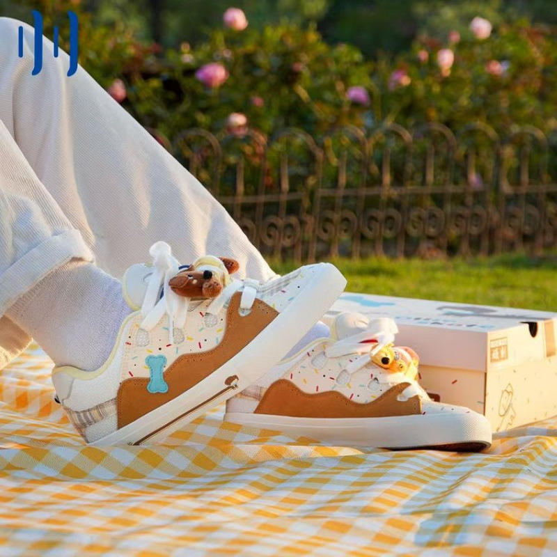 รองเท้าผ้าใบสไตล์เรโทรเกาหลีสำหรับนักเรียนหญิง ลายสุนัขดัชชุนด์ สีสันสดใส สไตล์ลำลอง รองเท้าทรงขนมปังสุดฮิต เทรนดี้ เหมาะสำหรับถ่ายรูปแนวสตรีท ออกกำลังกาย และเดินเล่น
