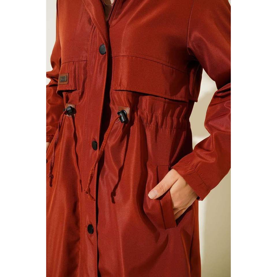 เสื้อโค้ทปักตราสัญลักษณ์สไตล์เกาหลีแบบปักลายเอวรูดกันน้ำระบายอากาศได้ดีทนทานสำหรับฤดูใบไม้ร่วงฤดูใบไม้ผลิ