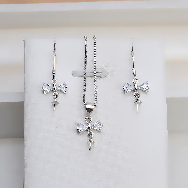 จี้เงินแท้ S925 สไตล์เกาหลี พร้อมตะขอเกี่ยวหู อุปกรณ์ทำเครื่องประดับมุก DIY พร้อมถาดของขวัญลายโบว์ผีเสื้อ 1344