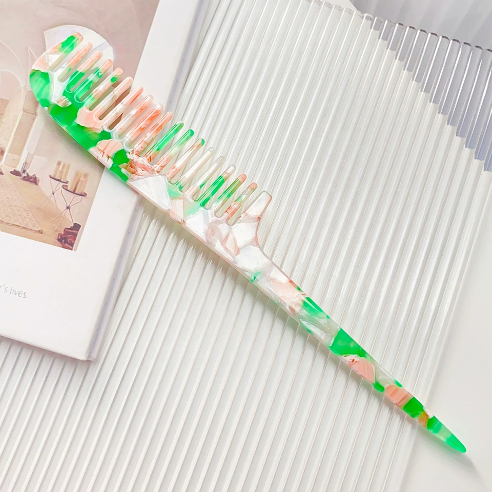หวีผมแฟชั่นแบบอะซิเตทด้ามยาวแบบเกาหลีหวีซี่กว้างป้องกันไฟฟ้าสถิตย์