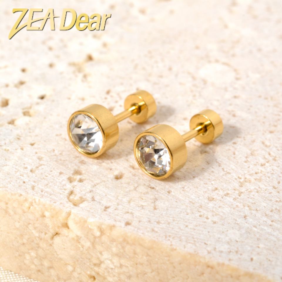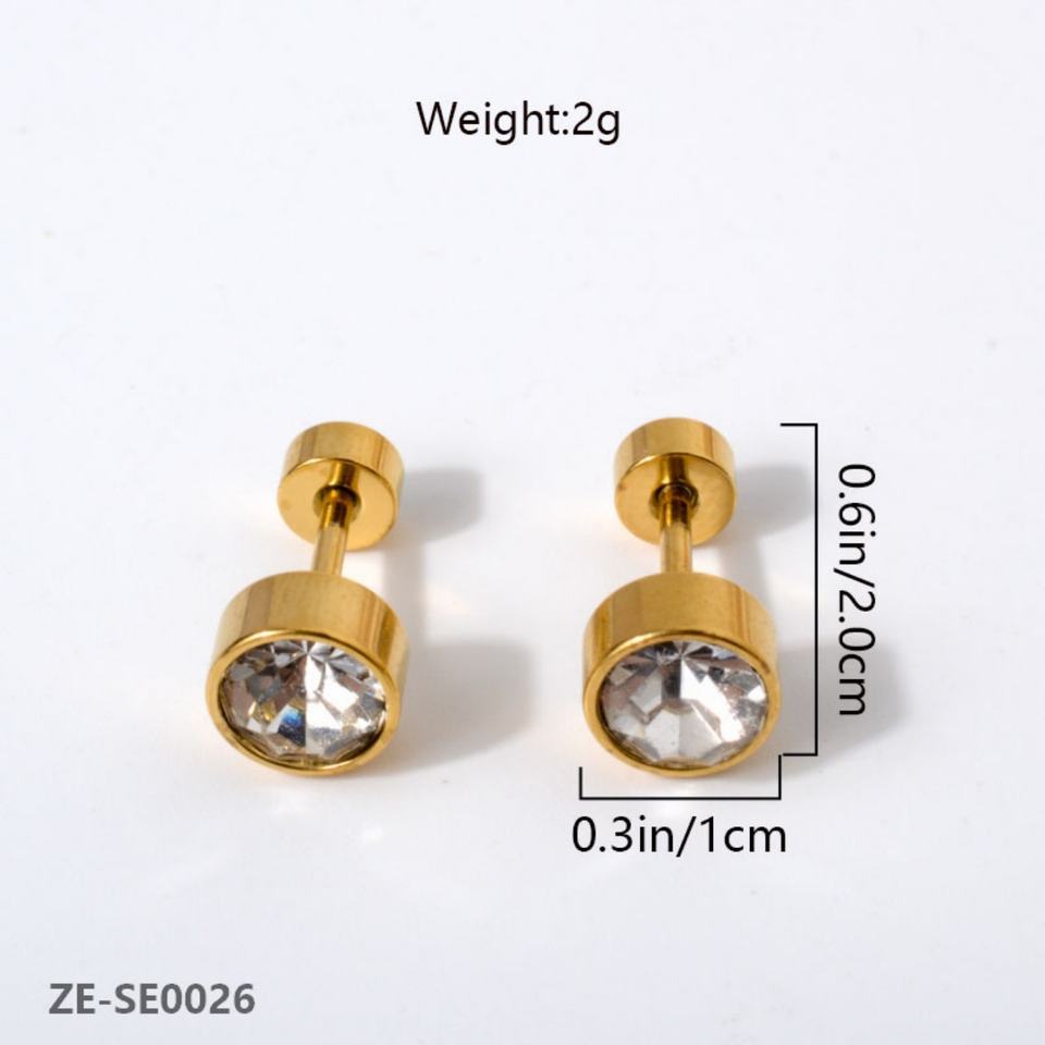 Korean Simple Shiny Zircon Stud Earrings 18K Gold Plated Stainless Steel Unisex Daily Wear Wholesale