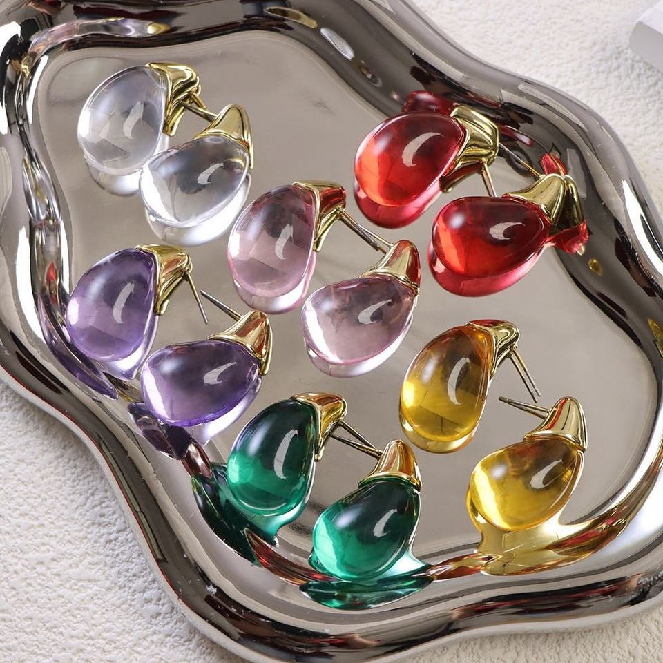 ต่างหูแบบติดหูทรงหยดน้ำสไตล์เกาหลี ชุบทอง รูปวงรี ทำจากไทเทเนียมสตีล อะคริลิกใส สำหรับผู้หญิง