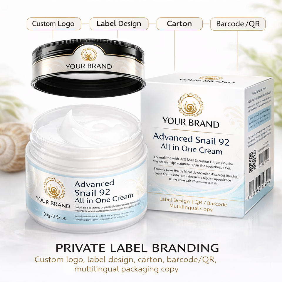 ครีมบำรุงผิวหน้าสูตรซ่อมแซมผิวจากเมือกหอยทาก 92% ของเกาหลี ไม่ผ่านการทดลองกับสัตว์ ขนาด 100 กรัม พร้อมเจลบำรุงผิวหน้าสำหรับใช้ทุกวัน
