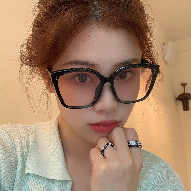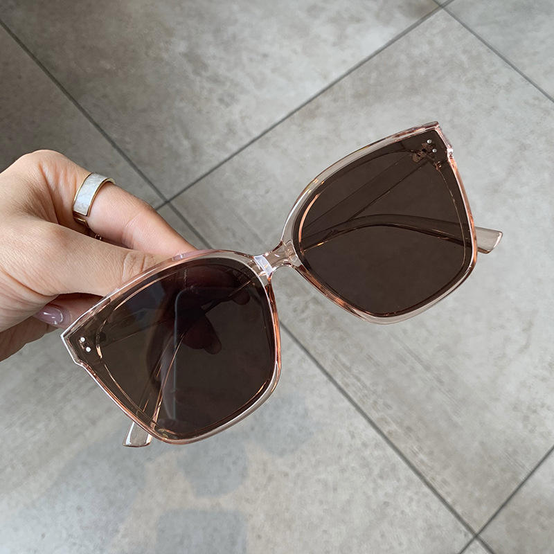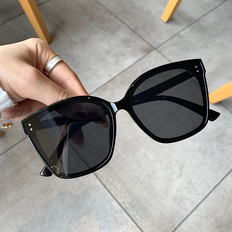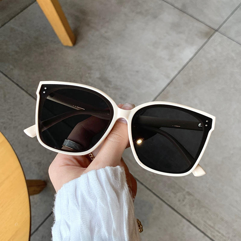 แว่นกันแดดทรงสี่เหลี่ยมสไตล์เกาหลี ยูนิเซ็กส์ เลนส์ PC ป้องกันรังสียูวี 400 กรอบสีเทา ตกแต่งหมุดลายจุด แฟชั่น ป้องกันแสงแดด ใช้กลางแจ้ง