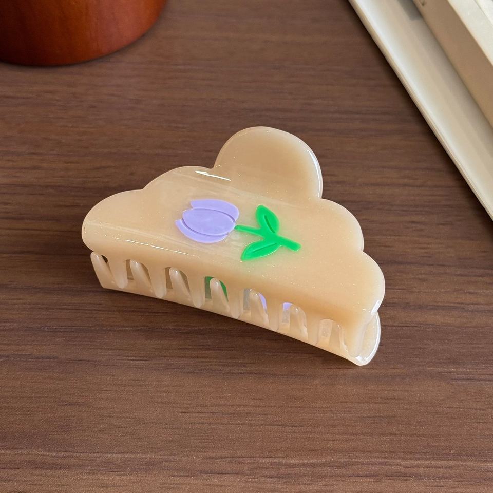 กิ๊บติดผมอะคริลิคสไตล์เกาหลี ลายการ์ตูนน่ารัก รูปดอกทิวลิปและเมฆ สำหรับผู้หญิง แบบหนีบผมทรงฉลาม เครื่องประดับผม แบบสั่งทำได้