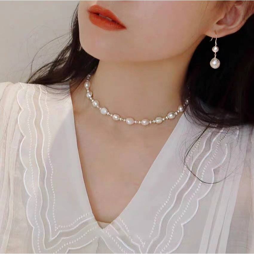 สร้อยคอไข่มุกสำหรับเด็กสไตล์บาร็อคสไตล์เกาหลีแบบสดใสสายโซ่ระดับกระดูกไหปลาร้าแบบหรูหราน้ำหนักเบาความไวต่อความรู้สึกระดับสูง