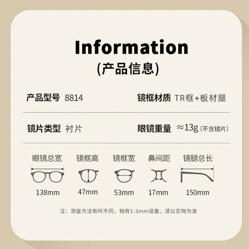 แว่นตาป้องกันแสงสีฟ้าสไตล์เกาหลีสำหรับผู้หญิงกรอบขนาดกลางเลนส์พีซี 8814 ต้นกำเนิดแดนยาง